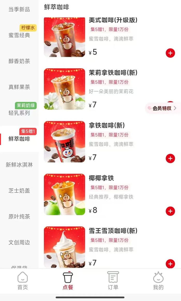 而在产品的价格方面,潘哥在微信小程序上发现,蜜雪冰城的5款咖啡产品,售价均在10元以下;而在瑞幸咖啡小程序上,如果使用9.9元的优惠券,也能喝到生椰拿铁等爆款。