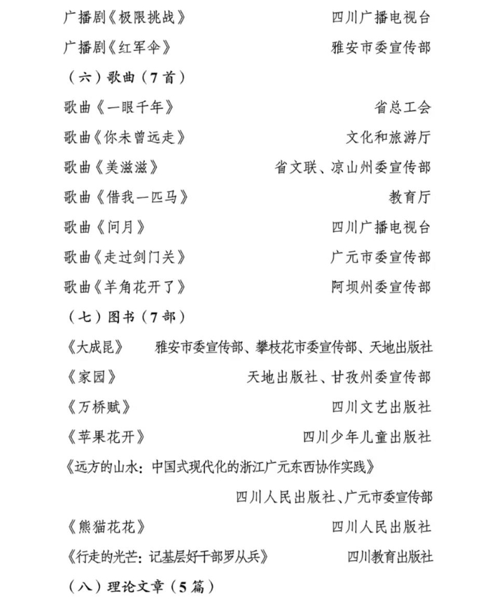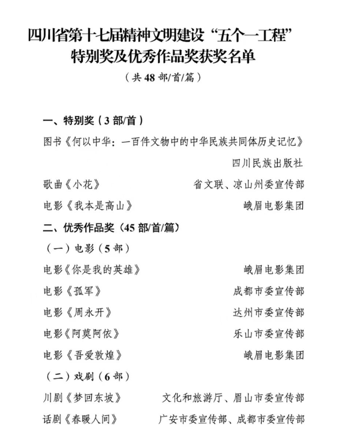 四川省“五个一工程”获奖名单公布