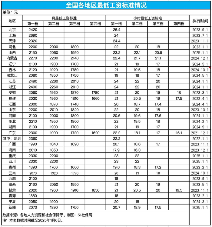 自2025年1月1日起,执行最低工资新标准