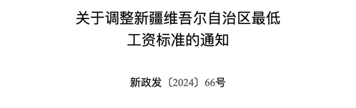 新疆维吾尔自治区人民政府发布了《关于调整新疆维吾尔自治区最低工资标准的通知》,明确自2025年1月1日起,调整最低工资标准。