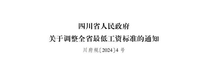 2024年12月31日,四川省人民政府发布了《关于调整全省最低工资标准的通知》,明确自2025年1月1日起,调整最低工资标准。