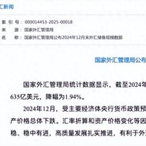 业内人士分析认为,2024年全年,我国外汇储备规模之所以能够稳定在3.2万亿美元以上,得益于全球主要股指上涨与美债收益率、美元指数变动之间的对冲效应。在美联储持续降息和全球金融环境趋向宽松的背景下,我国外汇储备规模未来一段时间或将保持稳定。