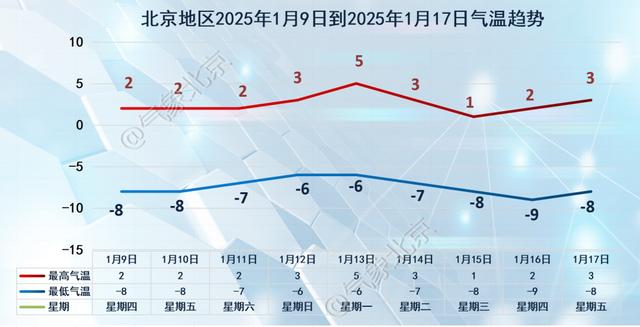 9日夜间:晴;偏北风2级左右;平原地区最低气温-8℃,山区最低气温-13~-11℃。