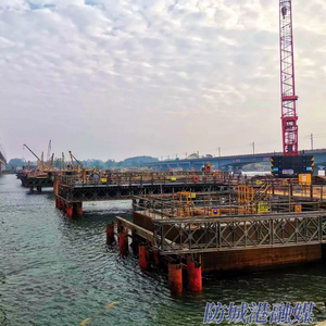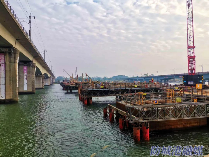 南防铁路钦州至防城港段茅岭特大桥施工现场。