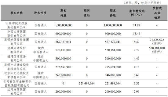 富滇银行前十大股东(2023年报)