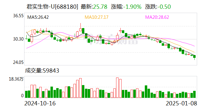 财中社1月8日电君实生物(688180/01877)发布自愿披露公告,宣布其注射用JS212的临床试验申请已获得国家药品监督管理局的受理通知书。该药物是一种重组人源化抗表皮生长因子受体和人表皮生长因子受体3的双特异性抗体偶联药物,主要用于治疗晚期恶性实体瘤。