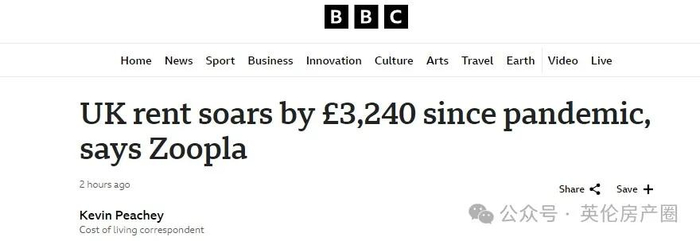 另外根据Zoopla的数据,目前,英国新出租房产的平均年租金比新冠疫情结束时高出3,240英镑,相当于每月增长270英镑。