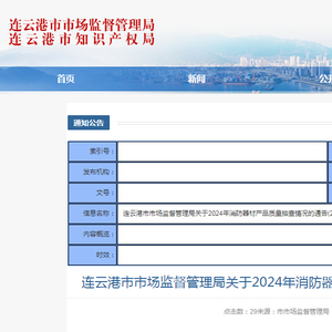 江苏省连云港市市场监督管理局发布2024年消防器材产品质量抽查情况(2024年7号)