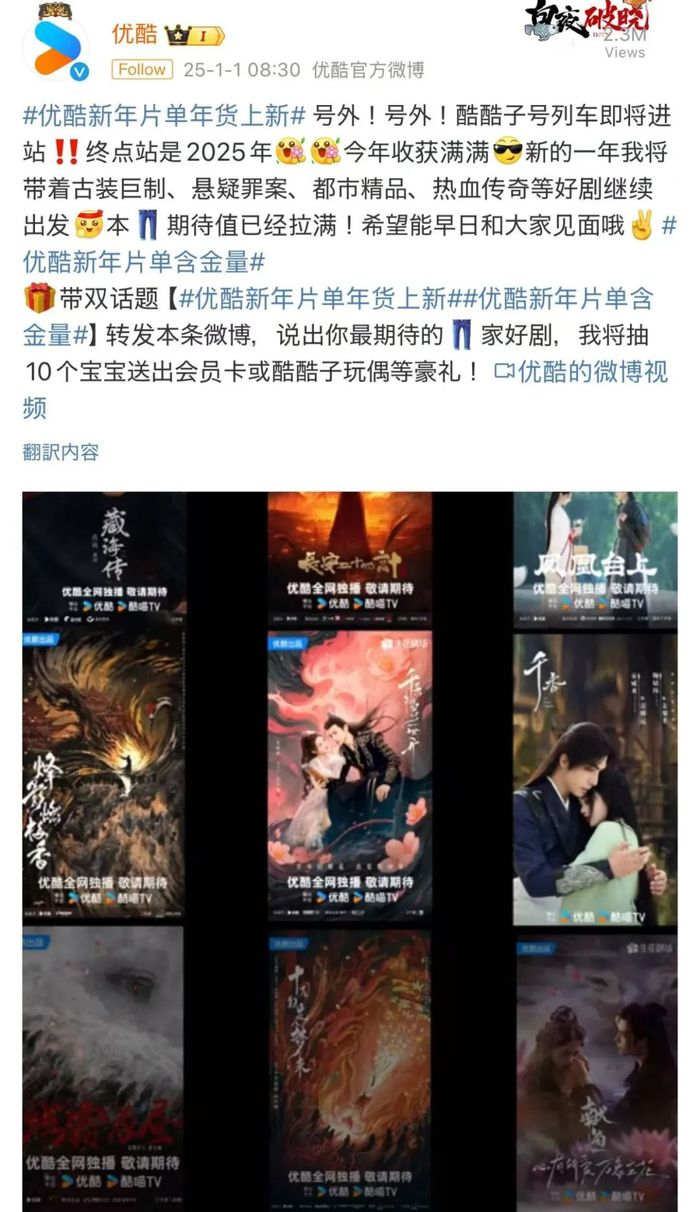 值得一提的是,短剧作为当下文娱市场风口也第一次出现在了长视频平台的开年片单中。