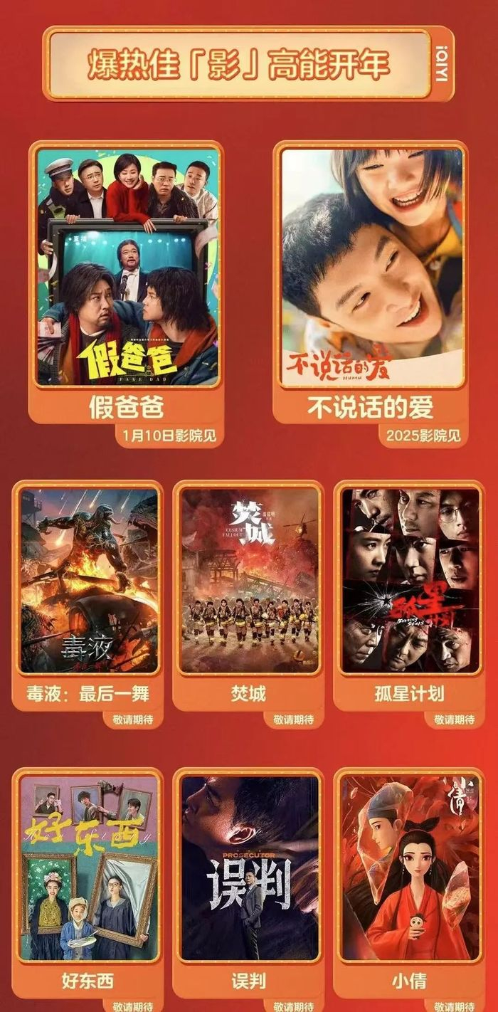 可以看到,在爱奇艺和芒果TV的开年、跨年片单中,释出了共计十余院线新片,除了近期院线热映项目外也有《假爸爸》《不说话的爱》等新鲜内容。