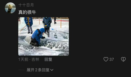 临近农历新年,面朝东方的“冰龙出水”寓意着平安、吉祥,人们在惊叹这条“冰龙”的独特之余,也注意到了背后雕刻师们的艰辛。此时的长春很寒冷,他们连续每天在户外进行雕刻,不仅为前来游玩的人们营造了一段欢乐的时光,也向全国所有游客传递了美好的祝愿。