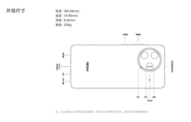 红米Turbo4采用塑料中框加玻璃后盖的设计,虽然在质感上略显不足,但也使得手机更加轻便,重量为203克,厚度为8.06毫米,拿在手里比较轻松。