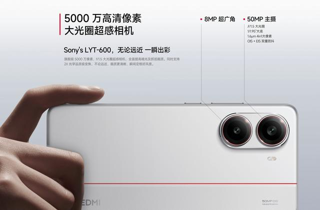 红米Turbo4后置5000万像素主摄和800万像素超广角镜头,主摄采用索尼LYT600传感器,拍照效果一般,只能满足日常记录生活的需要。