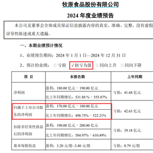 牧原股份公告,预计2024年净利润为170亿元—180亿元