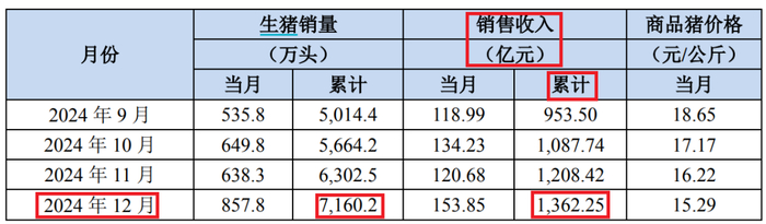 据牧原股份公告,2024年公司生猪销售收入为1362.25亿元,创历史新高。