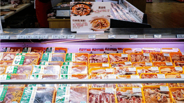 同时,代表品质生活、精致消费的品类也大幅增加。如肉品区,精品牛肉、原切羊肉、净菜切配组合、腌制肉类、鲜禽部位装盒等,分类清晰,包装精美;更有澳洲和牛火锅肥牛卷、冰鲜走地老母鸡、鲜切牛吊龙火锅片等心智爆款,配合各种贴心服务,极大程度地增加了顾客的购买欲。为了保持鲜度,肉品会每日出清,让利消费者的同时更保障了周转品质。