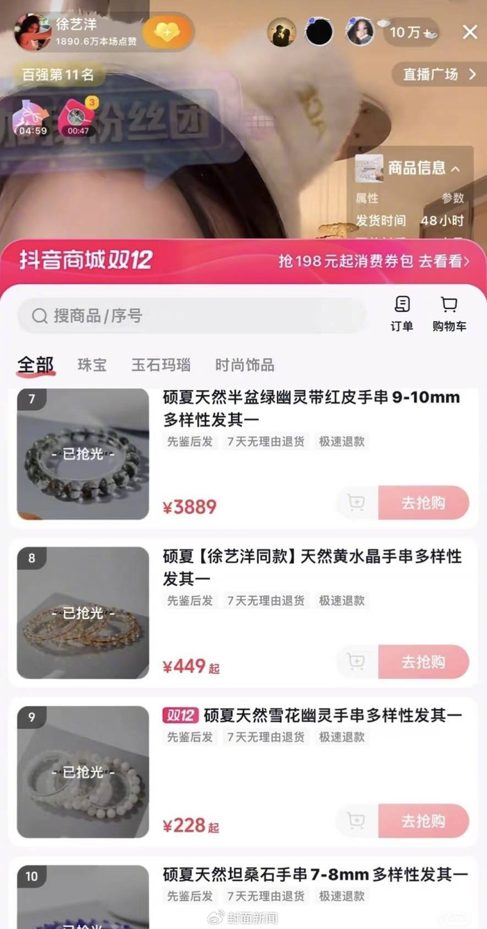 徐艺洋直播间水晶卖断货