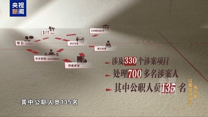 赤峰市纪委监委调集全市170余名纪检监察干部,组成6个审查调查组,全面起底、深挖彻查相关问题线索,将调查对象由评审专家、中标企业等群体向招标单位、财政评审单位延伸,起出了一张盘根错节的利益网,涉及330个涉案项目,处理700多名涉案人,其中公职人员135名。