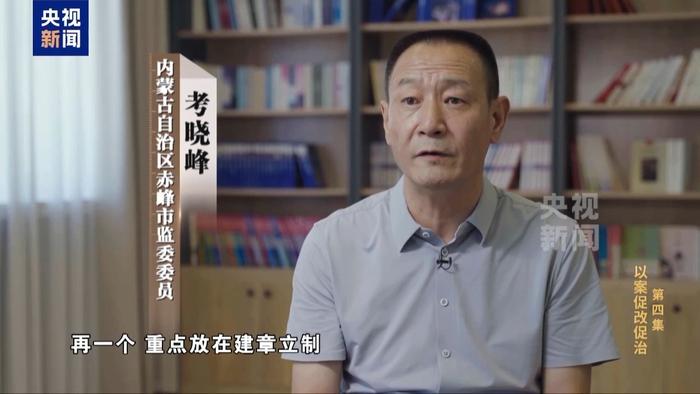 内蒙古自治区赤峰市监委委员 考晓峰:毫不留情地发现问题、查处腐败,这是一个层次。再一个,重点放在建章立制、堵塞漏洞这一块,踏踏实实做好查办案件的后半篇文章,在行业内系统内进行以案促改促治。
