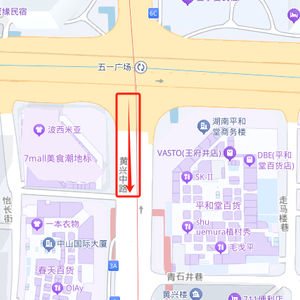 芙蓉区黄兴路五一大道至7mall路段北往南方向半幅路面,全长约0.2公里。