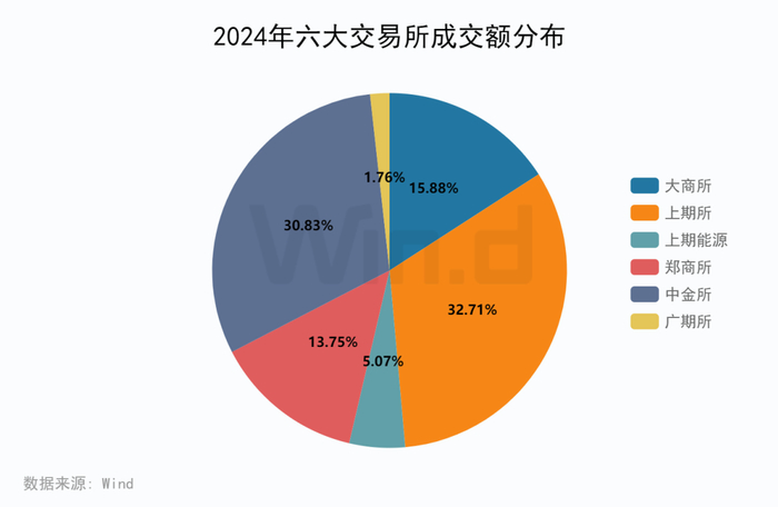 2024年期货市场成交额为619.26万亿元,同比上升8.93%,创历史新高。中金所金融期货成交额同比大涨43.4%,上海期货交易所成交额同比上涨33.89%,广州期货交易所成交额同比上涨78.7%,其他三个交易所成交额出现下跌。