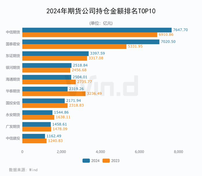 持仓金额排名:国泰君安期货大增31.7%