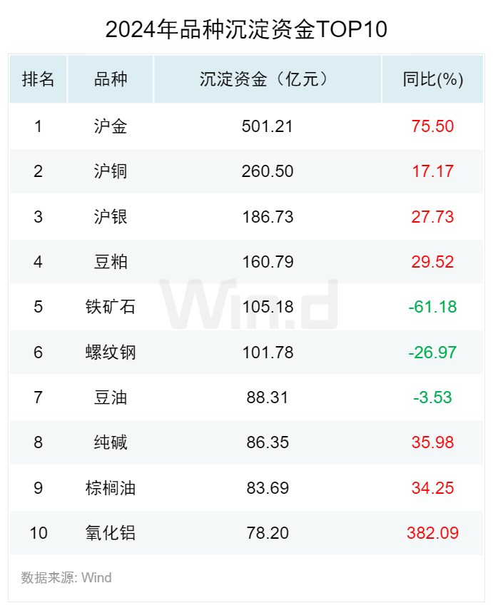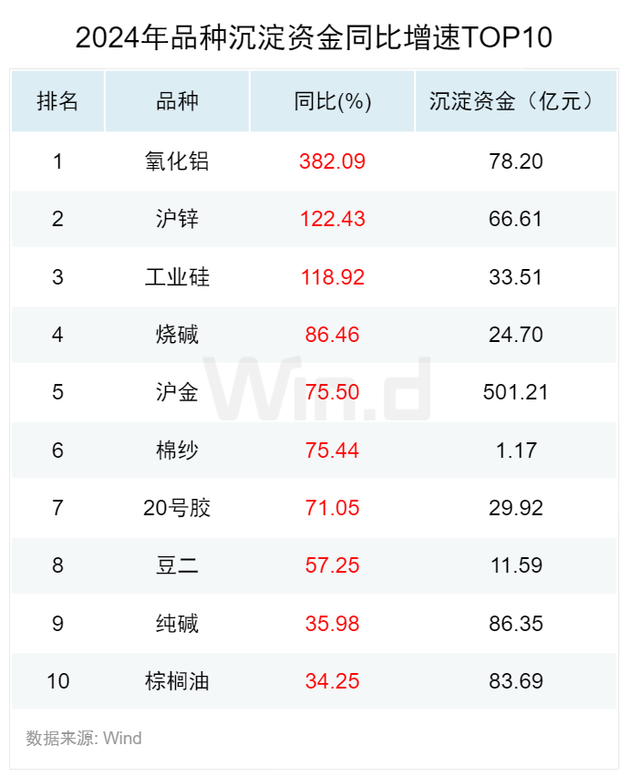 品种沉淀资金:氧化铝流入幅度最大