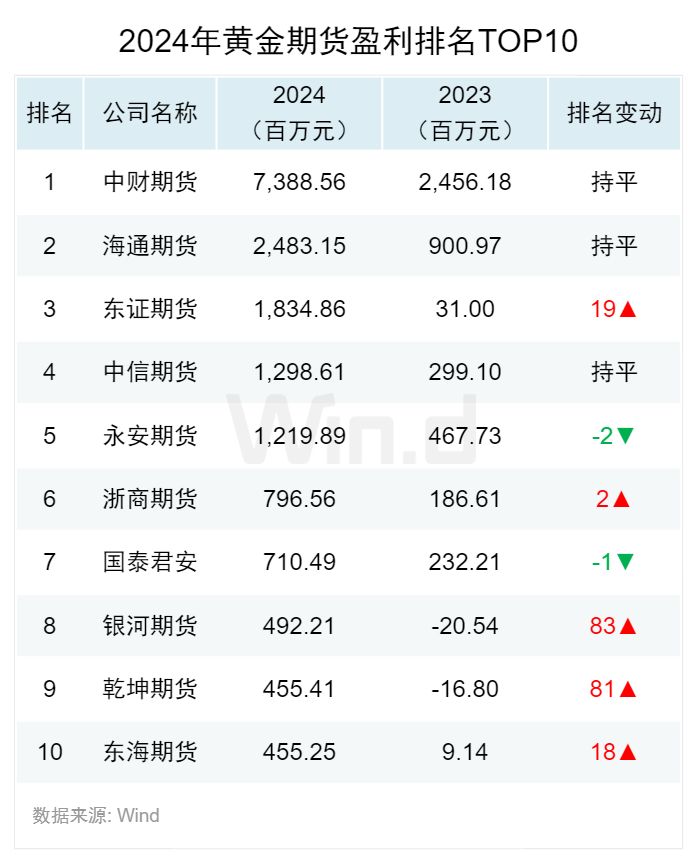 热门品种盈亏排名:中财期货蝉联黄金期货盈利榜首
