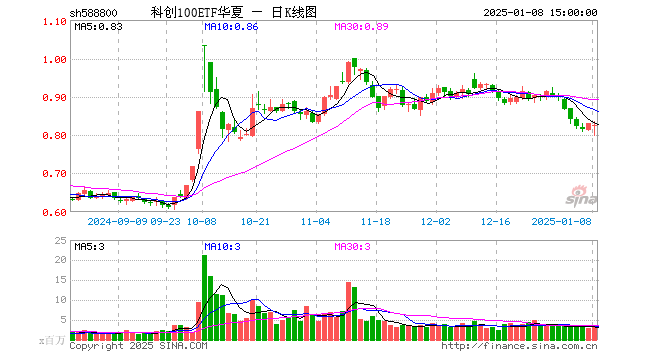 1月8日科创100ETF华夏(588800)份额减少500.00万份,最新份额53.85亿份,最新规模44.55亿元