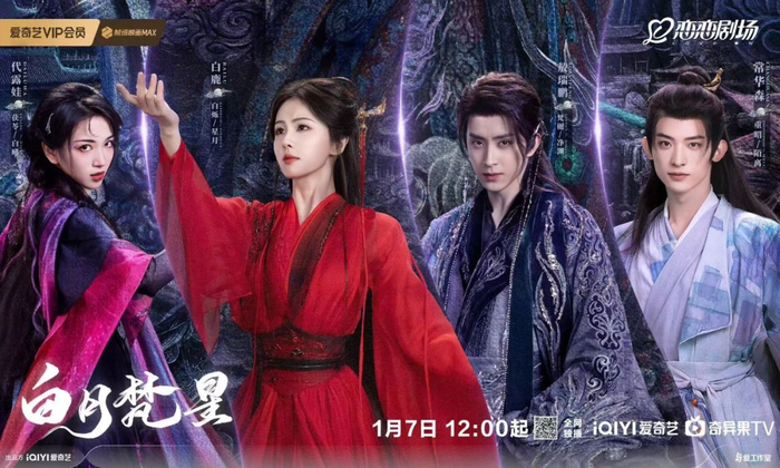 由爱奇艺与爱工作室操刀的《白月梵星》则与《宁安如梦》来自同一主创团队,女主白鹿和导演朱锐斌都是古偶领域的常客,二者合作的《宁安如梦》更是在2023年成为爱奇艺首部热度破万的自制剧,有效播放、招商、拉新等各方面成绩皆颇为亮眼。