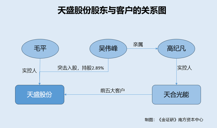 其中,吴伟峰系天盛股份客户天合光能的实际控制人高纪凡配偶吴春艳之兄弟。此外,吴伟峰持股21.33%的江苏有则创投集团有限公司曾为同行业可比上市公司常州聚和新材料股份有限公司的控股股东。