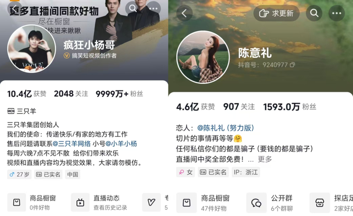 狂揽上亿粉丝的疯狂小杨哥,因在直播间销售的“香港美诚月饼”涉嫌虚假宣传,被罚6894.91万元责令暂停经营后,率先按下了暂停键。小杨哥背后的三只羊集团旗下众主播也纷纷停播。前三只羊千万级主播“陈意礼”在复播后表示现在是独立团队运营,其账号也不再显示三只羊MCN标识。