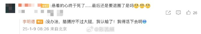 李明德回复称:“没办法,胳膊拧不过大腿,我认输了!我得活下去啊。”