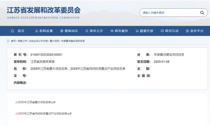 2025年江苏省重大项目名单