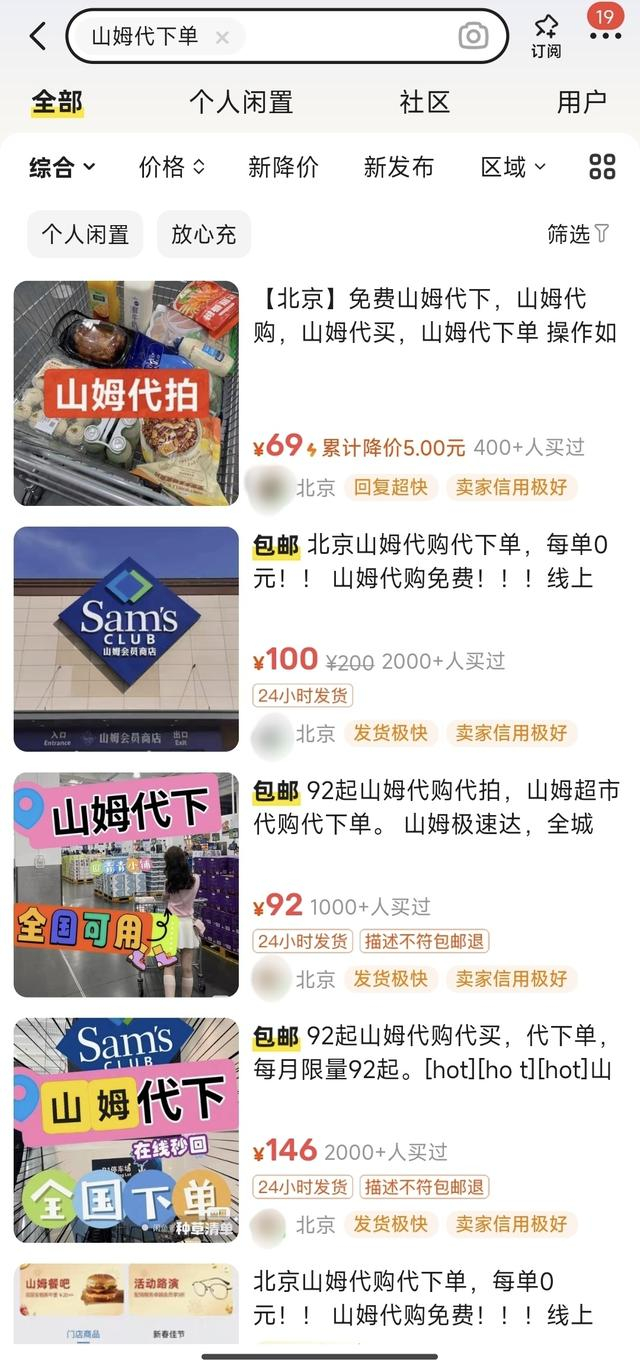 作为全球最大的会员制商店之一,山姆会员商店需要缴纳会员费后才能入场,普通会员260元一年,卓越会员的年费则为680元。对于住得较远或不常去购物的人来说,办会员卡性价比不高。但有人想体验一下山姆的购物氛围,有人想尝试山姆热销的商品,于是代购应运而生。记者梳理发现,山姆代购的形式大体可分为线下带人、代购分装、线上代下单三种。