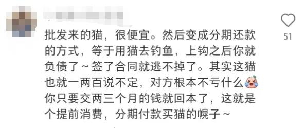 “很多学生本来一下子拿不出那么多钱,可能就放弃养宠物。商家采取网贷、分期付款甚至‘0元购’的方式,把一次性拿出来的钱分成了很多期,减轻了压力,导致一些学生一时冲动养了宠物。”