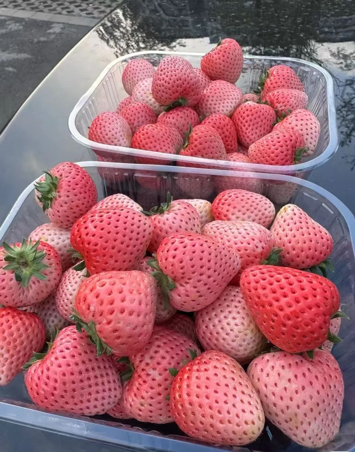 姜卓俊表示:“近几年很火的白色草莓,如‘白色天使’和‘白雪公主’是北京农科院和南方多家农科院研发的新型草莓品种。‘白雪公主’的果实色泽洁白如雪,口感细腻,甜度适中,带有一丝淡淡的奶香。此外,还有粉色草莓,最具代表性的是‘粉玉’,由杭州农科院研发。黑色草莓,如‘黑珍珠’等,这些草莓备受年轻人喜爱。”