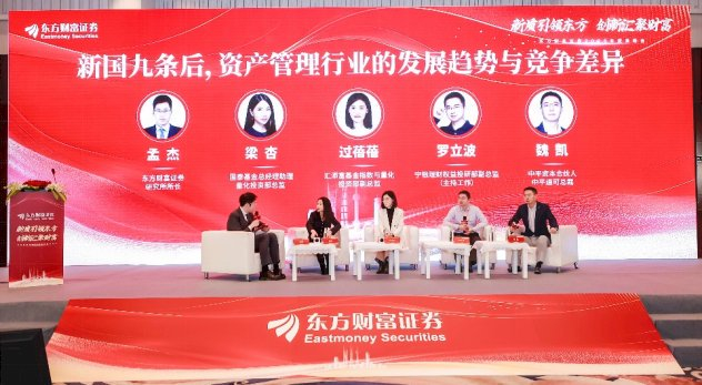 在主会场上,来自公募基金、银行理财、私募基金的重磅嘉宾,围绕“新国九条后,资产管理行业的发展趋势与竞争差异”,展开了精彩的圆桌讨论。圆桌论坛由东方财富证券研究所所长孟杰主持,参与圆桌论坛的嘉宾有国泰基金总经理助理、量化投资部总监梁杏女士,宁银理财权益部投研副总监(主持工作)罗立波先生,汇添富基金指数与量化投资部副总监过蓓蓓女士,中平资本合伙人、中平道可总裁魏凯先生。主持人和嘉宾们,共同探讨了随着“新国九条”系列部署的贯彻落实,资产管理行业将会迎来哪些重要变化,公募基金如何采取差异化战略壮大长期投资,银行理财参与资本市场面临哪些趋势变化,以及私募基金如何提升投资行为稳定性等热点话题。