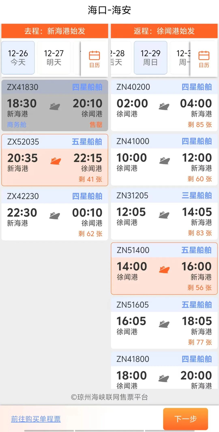 琼州海峡客滚运输往返套票功能上线 操作攻略→