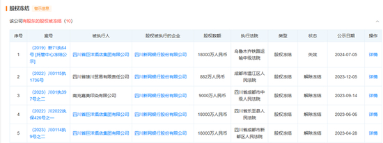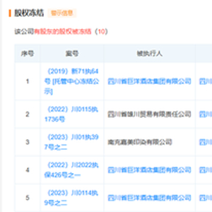 天眼查显示,该公司子2021年起陆续发生过10次股权冻结,最近的一次公示日期是2024年7月5日,四川省巨洋酒店集团有限公司旗下持有的新网银行1.8亿元股权数额被冻结。