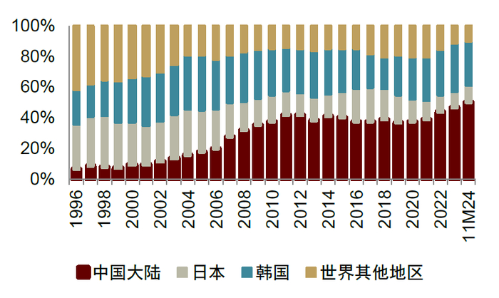 注:2024年仅统计中日韩三国预测值