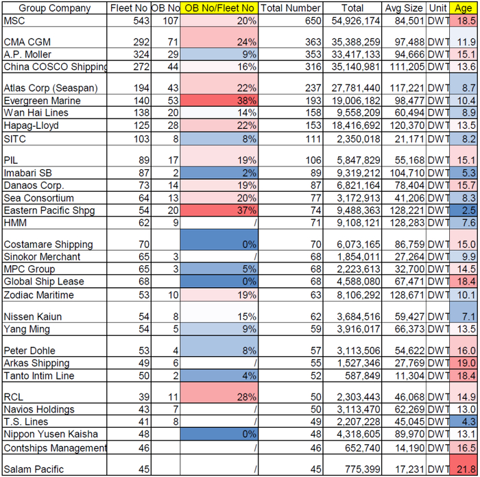 图表12:部分集运公司船队年龄仍然偏高