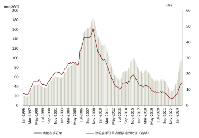 图表7:油轮在手订单占船队运力比值仍处于历史低位