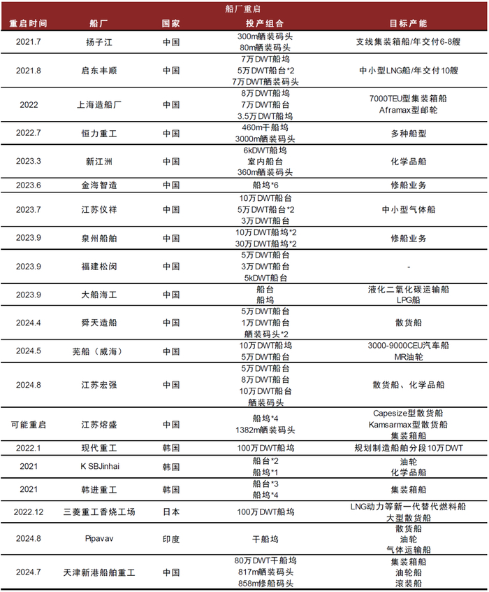 图表30:船厂产能重启梳理