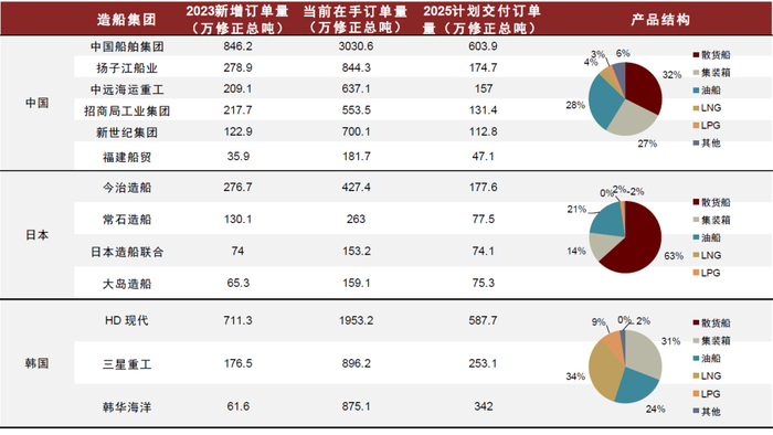 图表28:中日韩三国主要造船集团概况