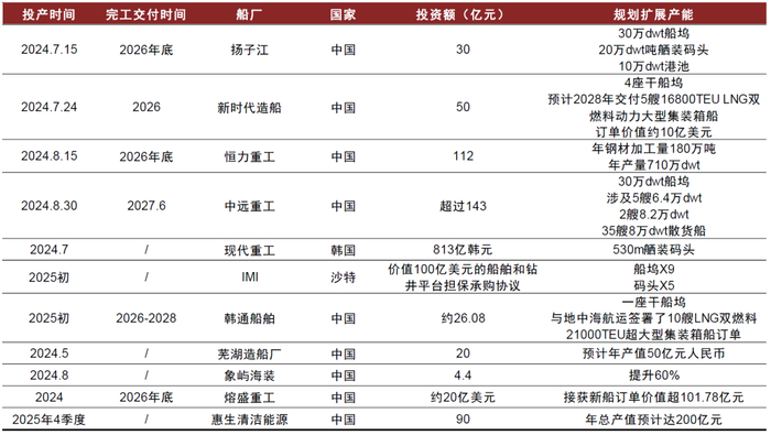 图表29:船厂扩产梳理