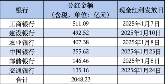 不止建行,自1月7日起,国有六大行已逐步开展2024年中期分红工作。