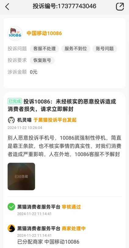 法治网调查发现,近年来,消费者手机被强制停机而需要重新实名认证等情况并不少见。在黑猫投诉上,也有大量关于移动、电信、联通等运营商以及一些网络号码被强制停机的投诉。一位网友表示,因为未经核实的恶意投诉,造成被强制停机;有网友投诉表示,号码用了10年,却被判定为存在电诈风险,被强制停机。还有的网友表示,按照提示去营业厅进行实名认证后,却还是无法复机,甚至被要求提供多项证明。而有的网友见无法重新开机,就要求注销号码,但是这个请求也无法实现。“不但严重影响了工作和生活,停机期间的费用却照常收取,这不是霸王条款吗?”网友质疑道。