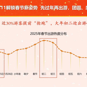 中国消费者报北京讯(记者武晓莉)中国旅行社协会联合途牛旅游网发布《2025春节旅游消费趋势报告》(以下称《报告》)。《报告》显示,申遗成功后,首个春节传统文化游高燃,东北冰雪游再续热潮。第一波过年出行潮将出现在1月25日,将在1月30日达到峰值。从休假安排上看,“请2休11”凑出超长假期,先过年再出游,团圆、度假两不误。