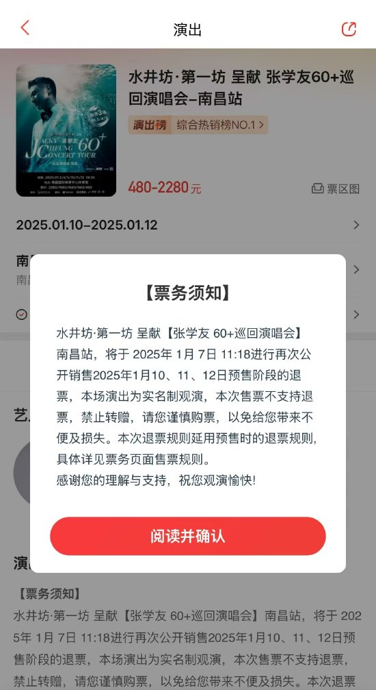 王女士(化名)投诉称,1月7自己在猫眼演出抖音直播间抢购两张1月12日张学友演唱会南昌站门票,共计4560元。而她姐姐在同一时间通过大麦网也抢到了两张内场票,导致重复购票。鉴于当时猫眼并未出票,而大麦已经出票完成,于是她就向猫眼客服提出申请退款,被拒绝。随后她继续向抖音客服反馈情况,客服了解后和猫眼进行协商,猫眼客服称需要等他们出票统计完,暂时无法退款。